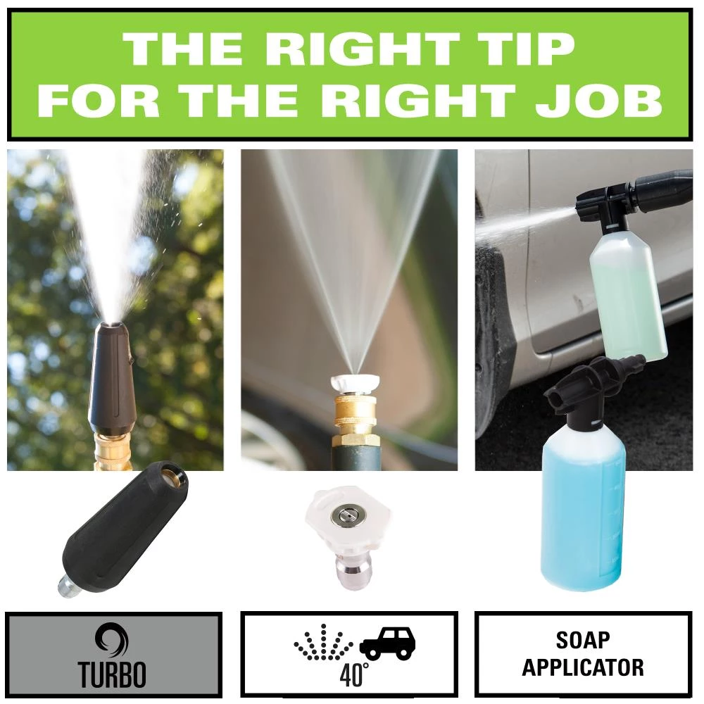 - Kit includes soap applicator and turbo nozzle