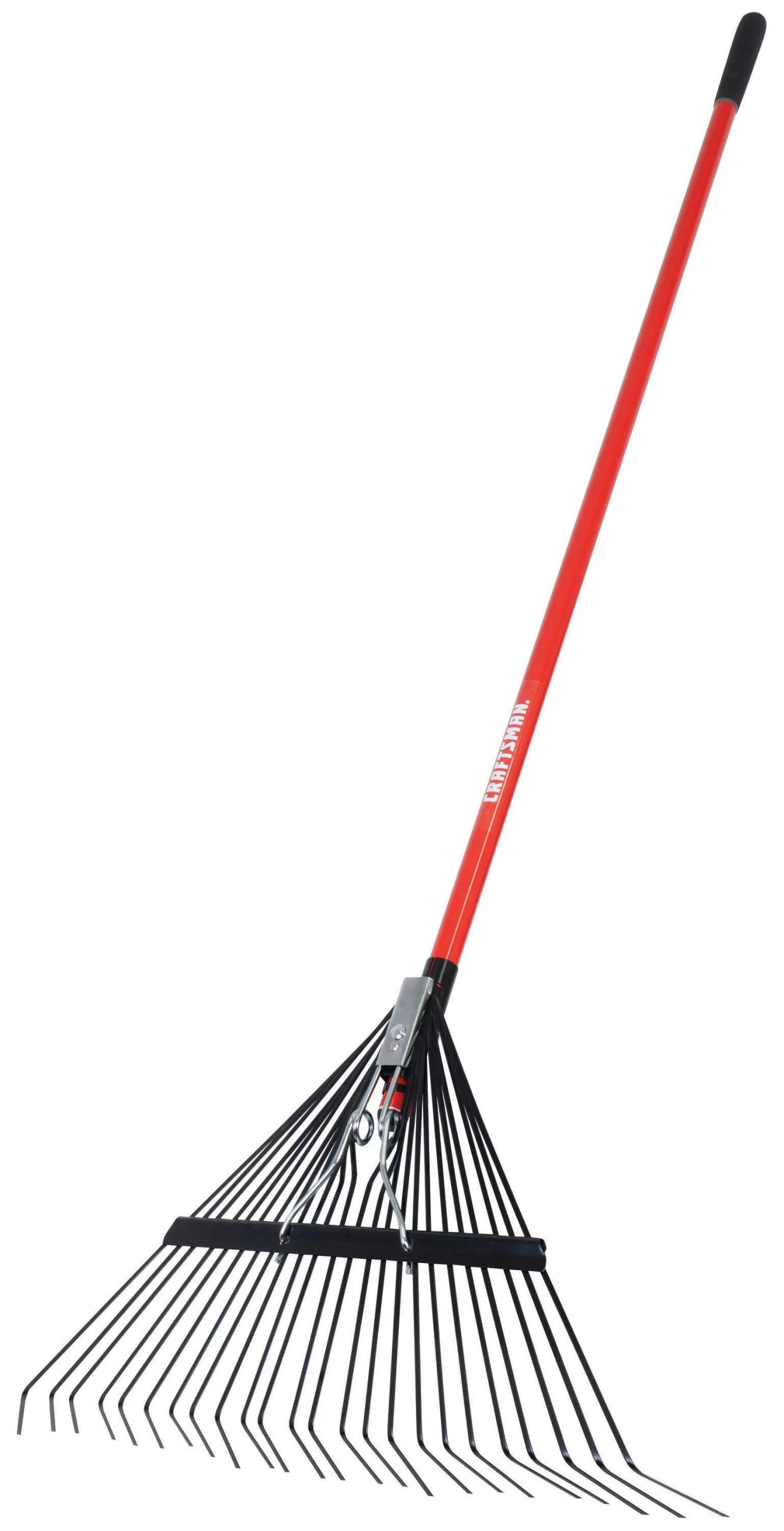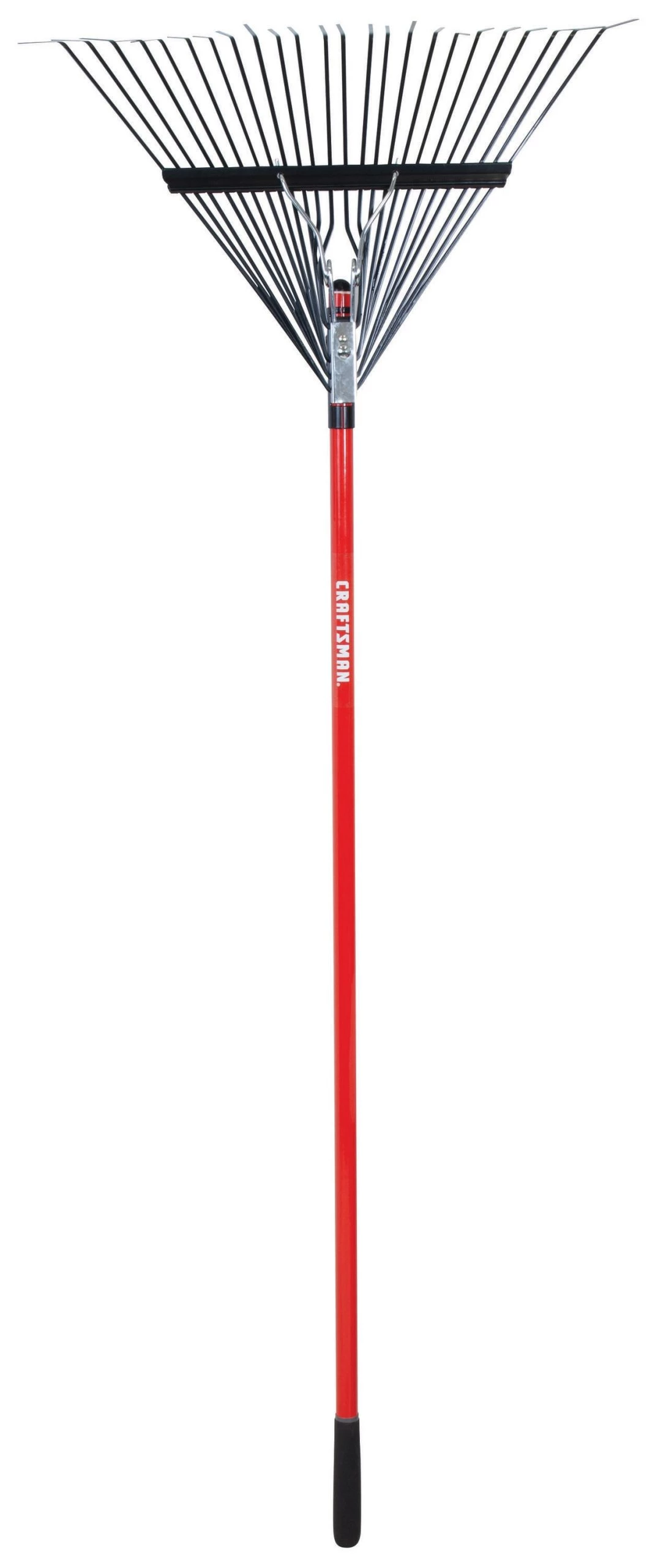 The CRAFTSMAN 24 tine fiberglass handle rake has spring backed tines, ideal for raking and removing debris and thatch from lawns. The rake head is bolted to the fiberglass handle resulting in a reliable rake that works every season.