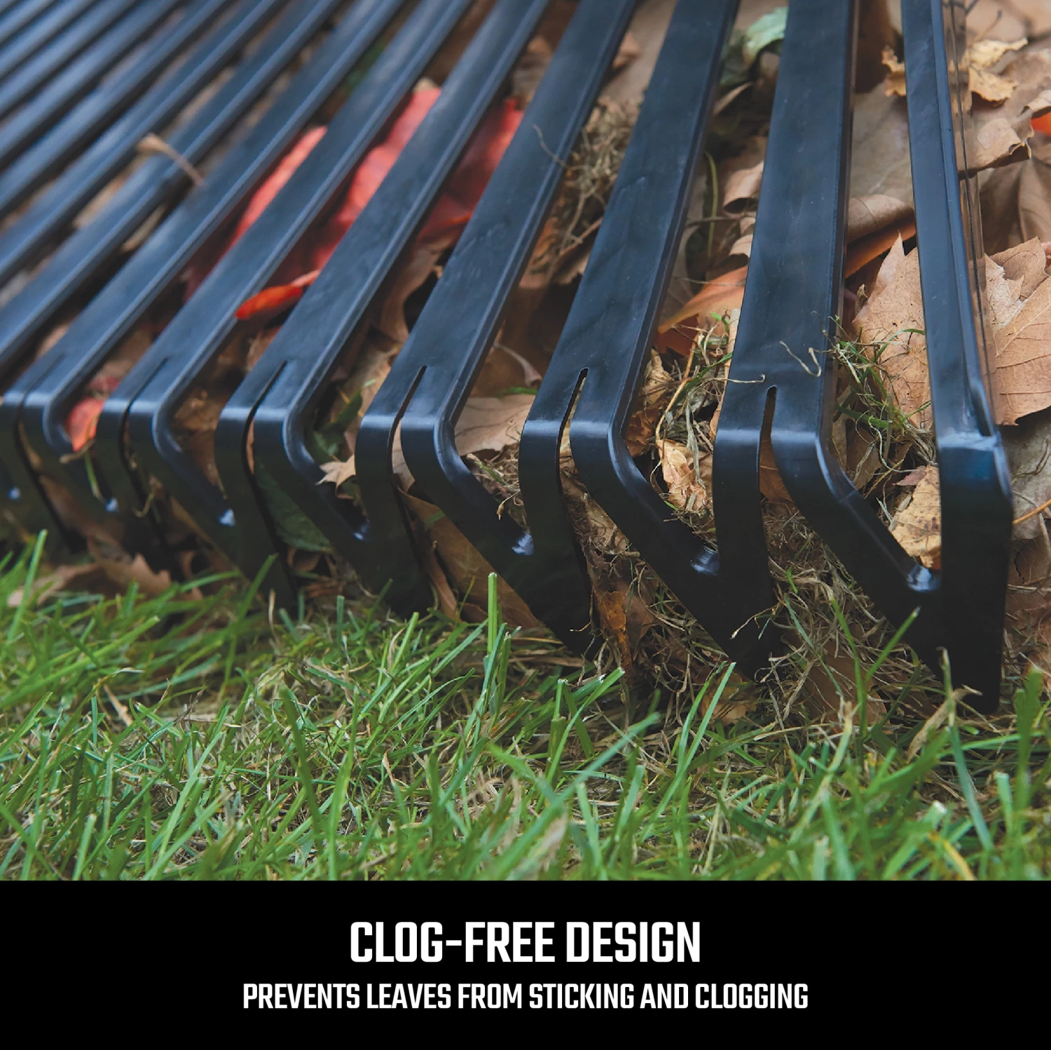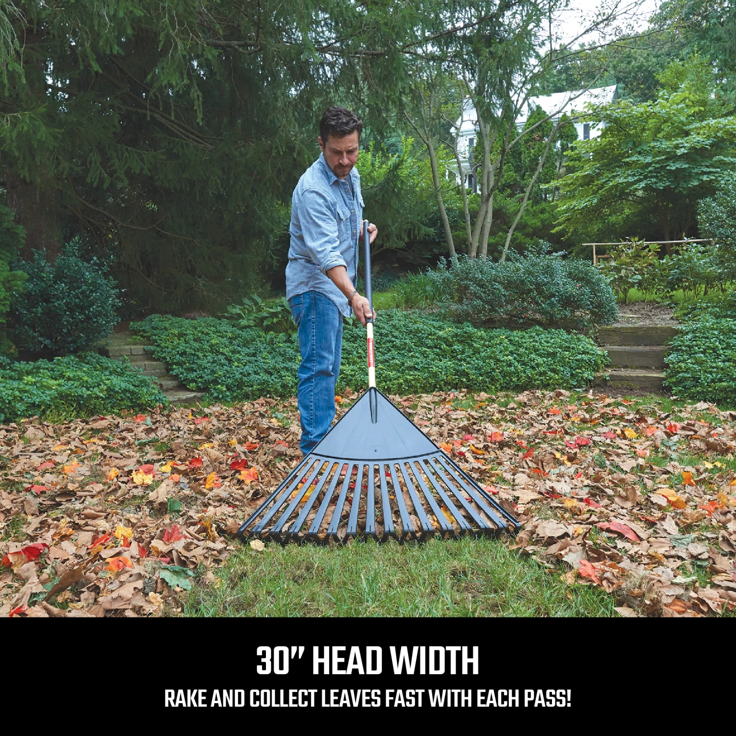 - 30-In head with clog-free teeth design to prevent leaves from sticking to rake and slowing you down